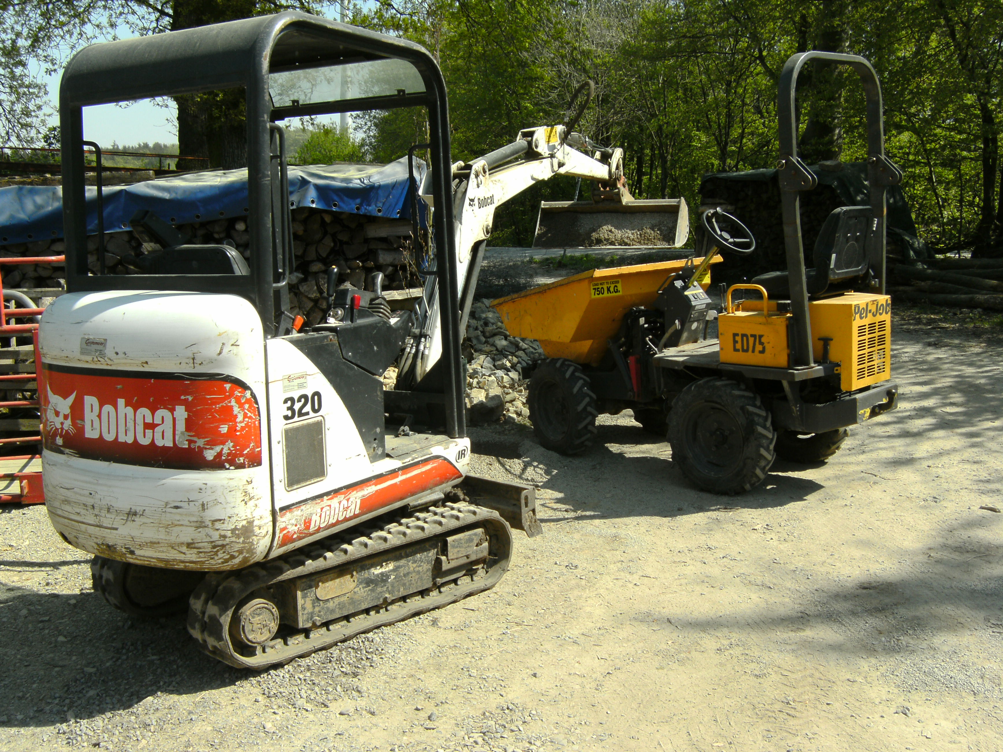 Hier sehen Sie unsere unschlagbare Kombination, wenn es darum geht, große Mengen Material aus engen Gärten heraus- oder herein zu bekommen...! Bobcat Bagger 1,6t und Volvo Dumper mit einer Nutzlast von 750kg. Beide Maschinen haben eine Durchfahrbreite von lediglich 1,0 Metern!